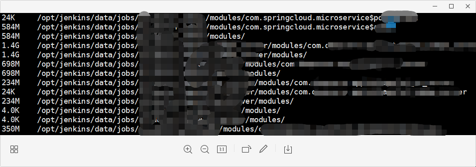 du -h –max-depth=1 /opt/jenkins/data/jobs/*/modules/