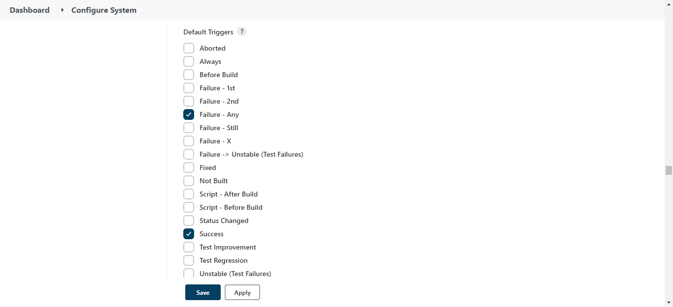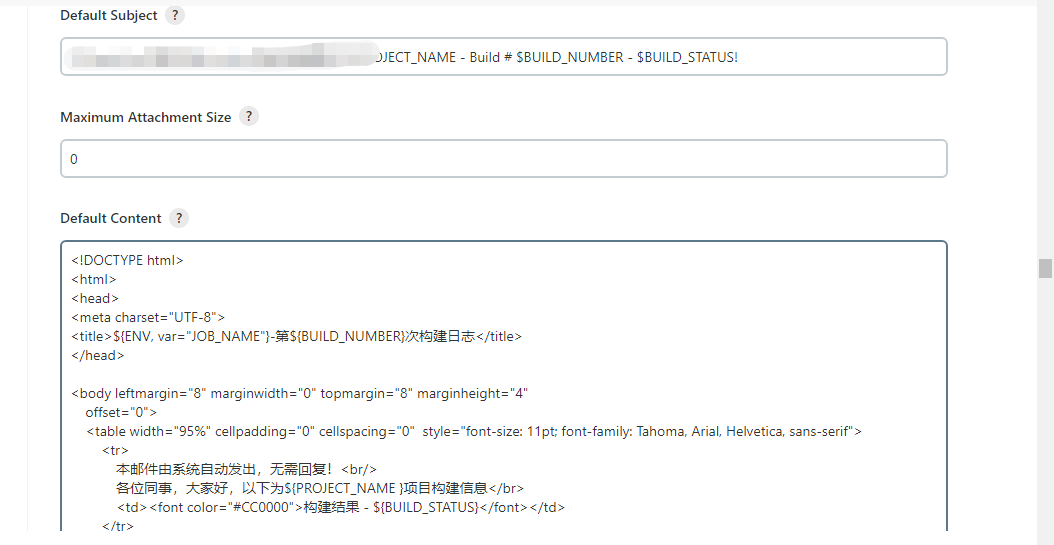 配置内容默认即可,邮件内容类型可以根据自己的配置选择,收件人列表可以从前面的系统设置中默认收件人选项配置。